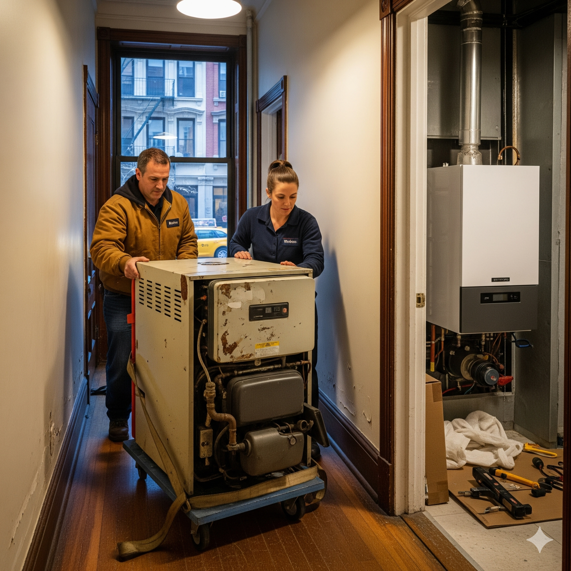 Manhattan co-op owners and Staten Island homeowners are going through different procedures, but are almost equally stressed when a boiler needs to be changed. Thus, the question is not only "what kind of boiler should I select?" but also "what will the process of my boiler be?"